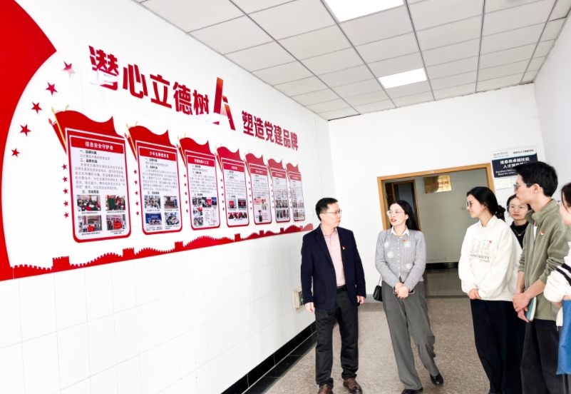 園區(qū)黨員代表在周主任和王院長的陪同下參觀了學校校史館,深入了解了商貿學院的創(chuàng)立背景、發(fā)展歷程、教育教學成果以及社會影響力等方面的內容,校史館充分展現了學校的辦學理念、悠久的歷史積淀和豐富的文化底蘊。隨后參觀了信息與人工智能學院教學樓和教學設施,了解了學院的榮譽歷程、師資團隊以及黨支部多種多樣的黨建活動。